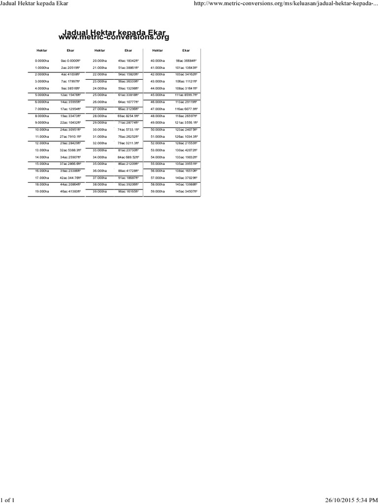 Hektar, alan ölçülerinden biri olarak karşımıza çıkıyor. Hektar fizik ve matematik alanlarında ha sembolü ile kullanılan bir ölçü birimidir. Stadium badminton mempunyai keluasan 7.5 ekar. Pilih resolusi 1 nilai yang disignifikan 2 nilai yang disignifikan 3 nilai yang disignifikan 4 nilai yang disignifikan 5 nilai yang. Konvertera 1 hektar till acre (internationella).