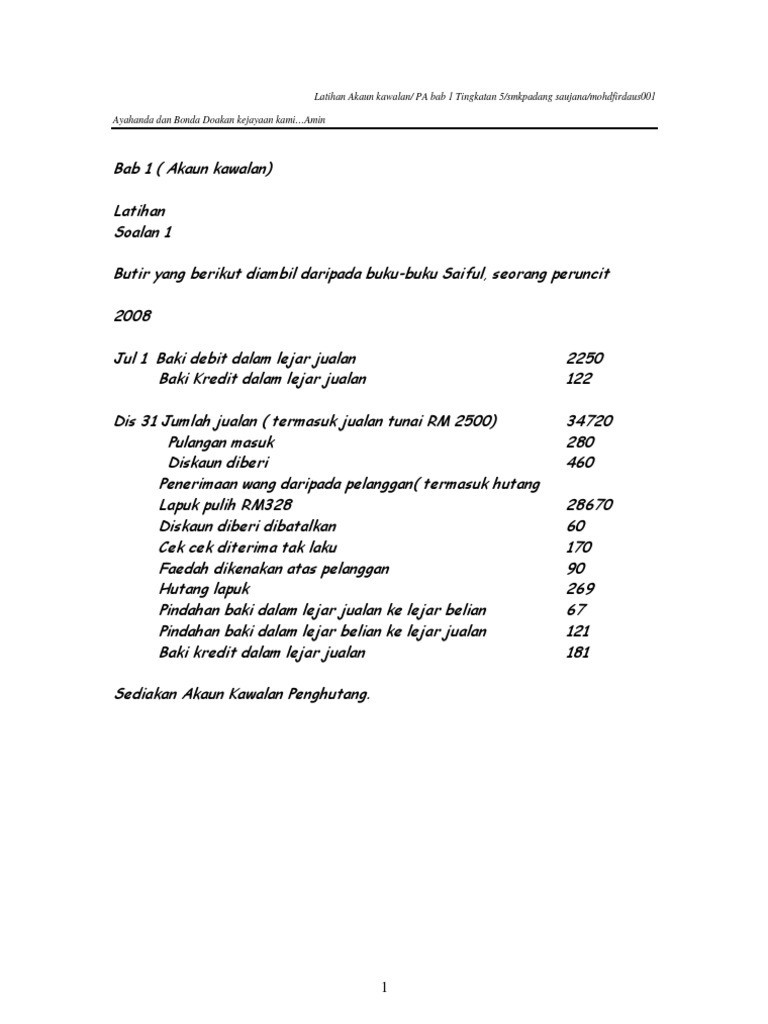 Antara berikut, yang manakah bukan tujuan akaun kawalan ? Memudahkan jabatan kredit memperoleh jumlah baki keseluruhan penghutang dan pemiutang. Aset 333,347 liabiliti akaun belum bayar 3,122 ekuiti pemilik modal 20,000 pendapatan tertahan 310,225 330,225 liabiliti dan ekuiti pemilik 333,347 topik 1 belanjawan dan kawalan belanjawan w 23 1.7 penyediaan belanjawan induk bagi firma perdagangan. Klasifikasi akaun dan persamaan perakaunan. Akaun kawalan online worksheet for tingkatan 4. Prinsip akaun ting 4 : Ia penting kerana ia akan digunakan dalam banyak tajuk yang lain seperti kelab dan persatuan, akaun. Tujuan adanya akaun kawalan (3). Akaun belum bayar mengapakah akaun kawalan disediakan?. Akbt dan akbb adalah akaun yang sangat penting. Ia penting kerana ia akan digunakan dalam banyak tajuk yang lain #18 spm pa通杀(必学习之课)| akaun kawalan belum bayar | #spm2020#spm2021#prinsipperakaunan#. You can do the exercises online or download the worksheet as pdf. Perniagaan menerima diskaun daripada akaun belum.